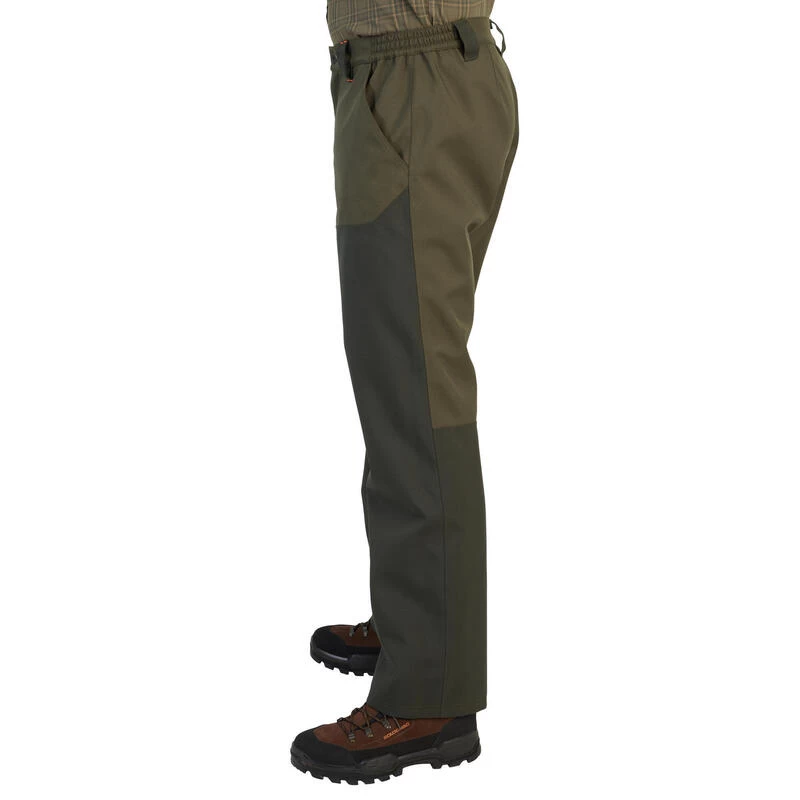 Ce pantalon de chasse allie la résistance et le confort grâce à ses deux composants principaux : un tissu polyester P600 sur la membrane extérieure, et une doublure filet mesh à l’intérieur. Il vient remplacer dans notre gamme le pantalon Supertrack 300 : nous voulions en effet, avec ce modèle pourvu d’une ceinture élastiquée, proposer aux chasseurs un produit résistant au meilleur rapport valeurs/prix.